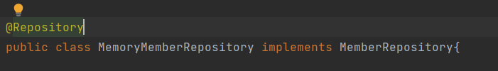 먼저 레포지토리를 등록해보자. 아래 사진처럼 클래스 위에 @Repository 어노테이션을 등록해주자. 그럼 끝이다!